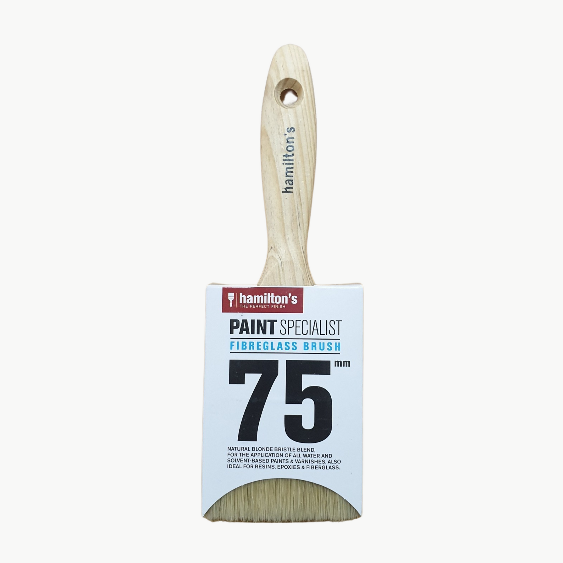 Natural, blonde bristle-blend designed for applying paints, varnishes, stains, resins & fibreglass.